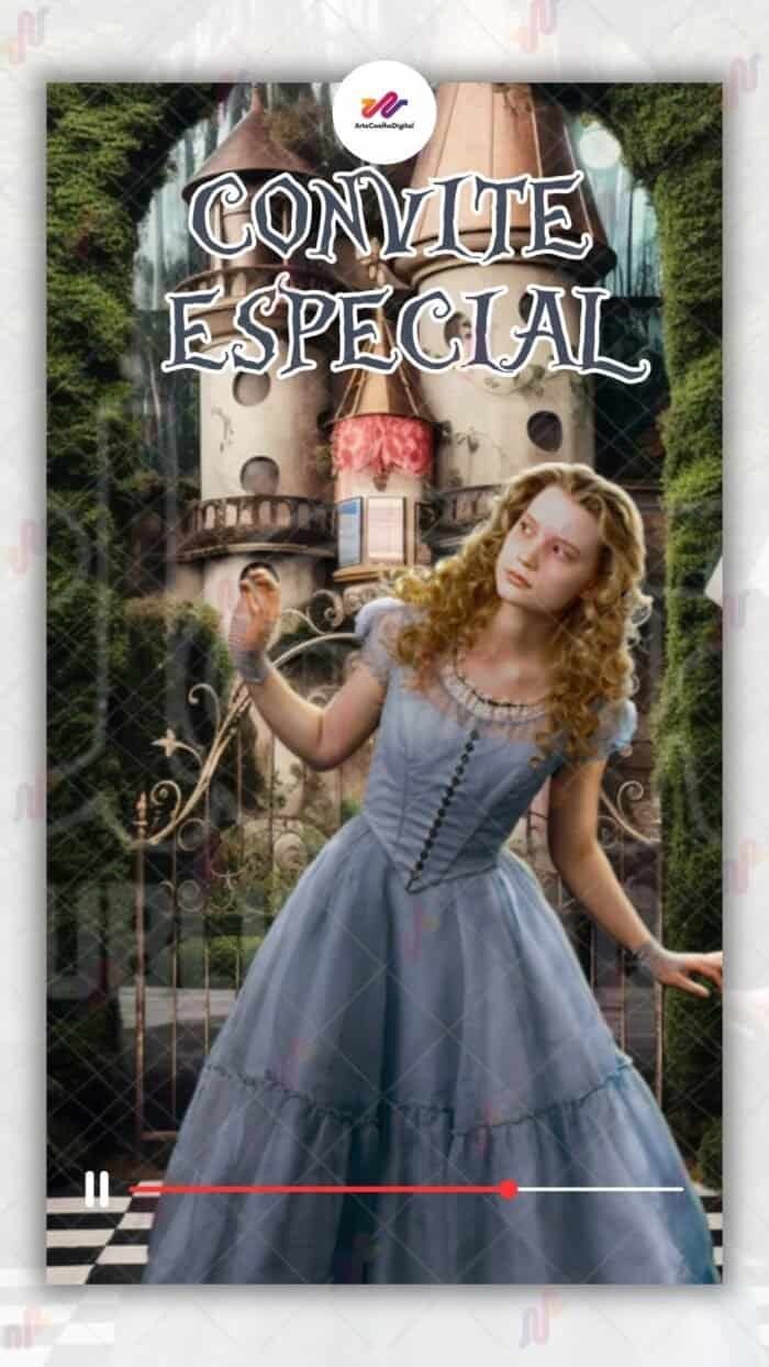 Convite Animado Alice no País das Maravilhas 15 anos O preço original era: R$ 100,00.O preço atual é: R$ 80,00.