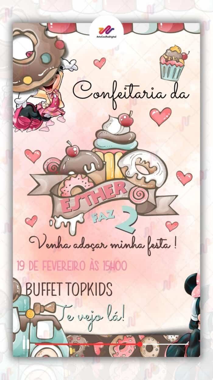 Convite Animado Minnie Rosa O preço original era: R$ 75,00.O preço atual é: R$ 55,00.