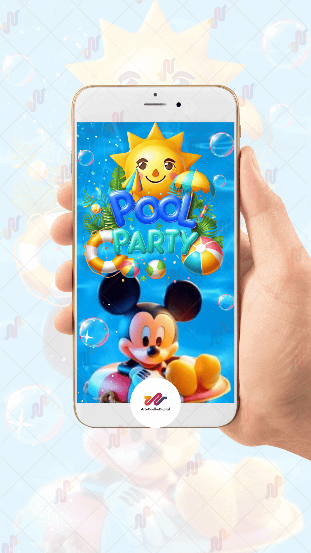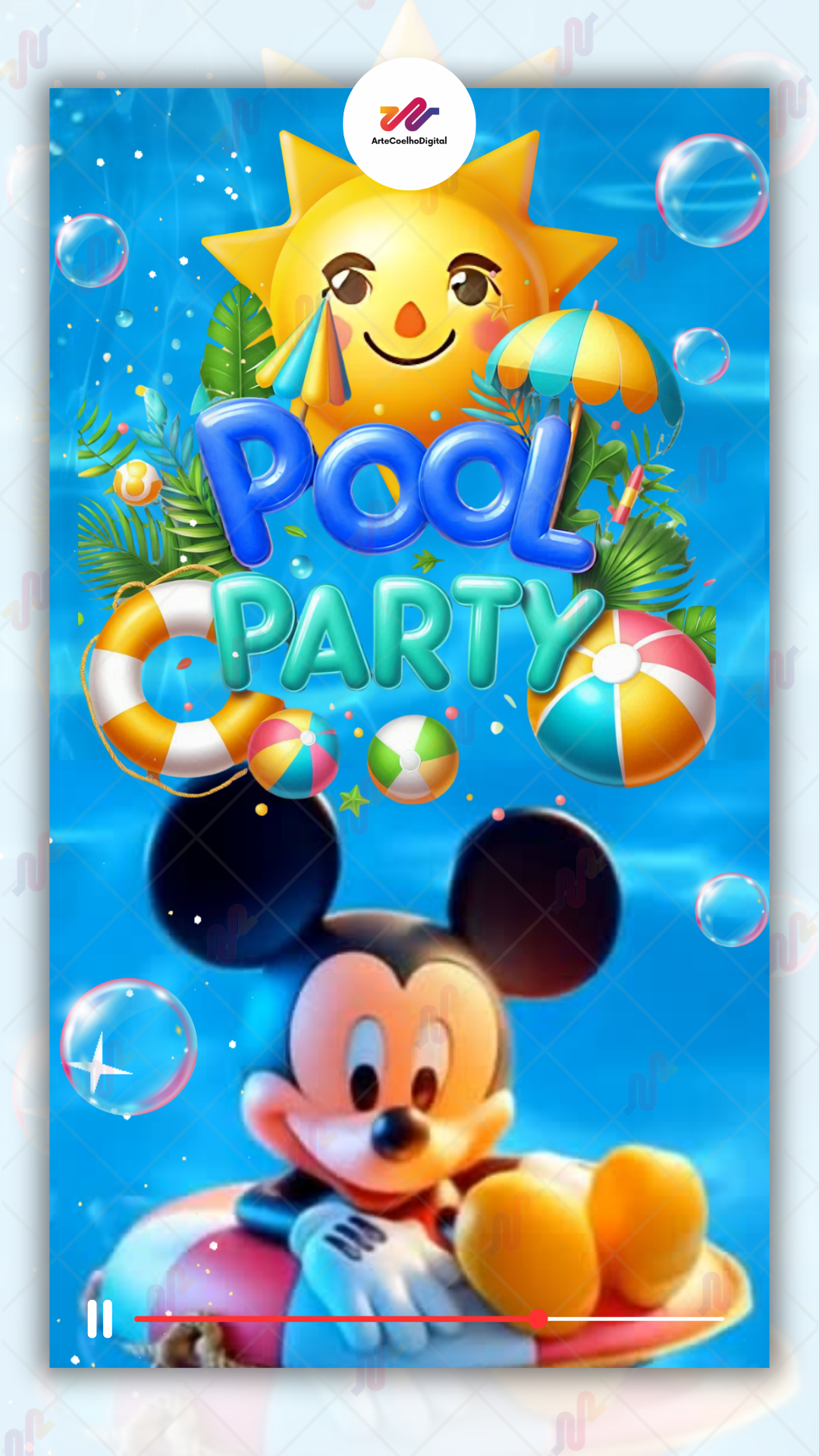 Convite Animado Plus Pool party do Mickey