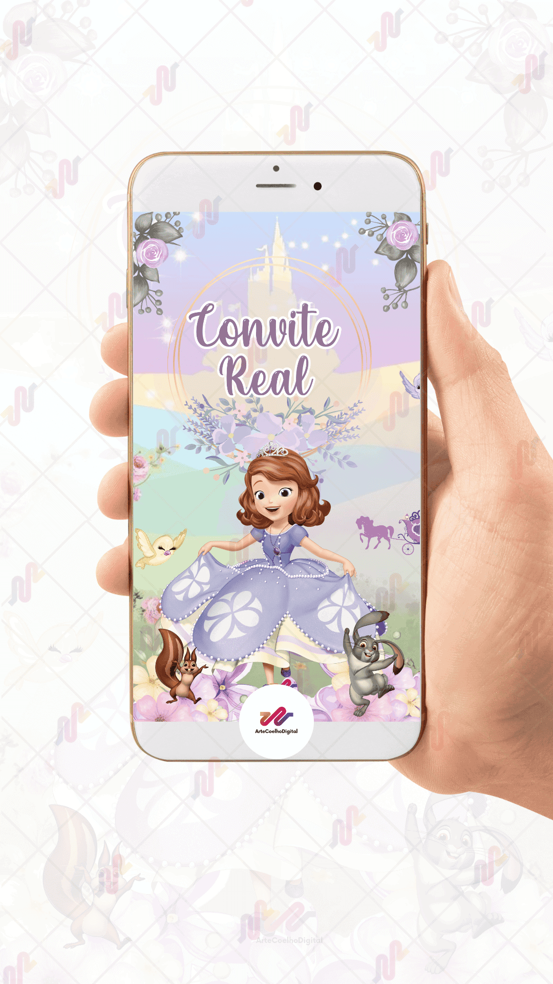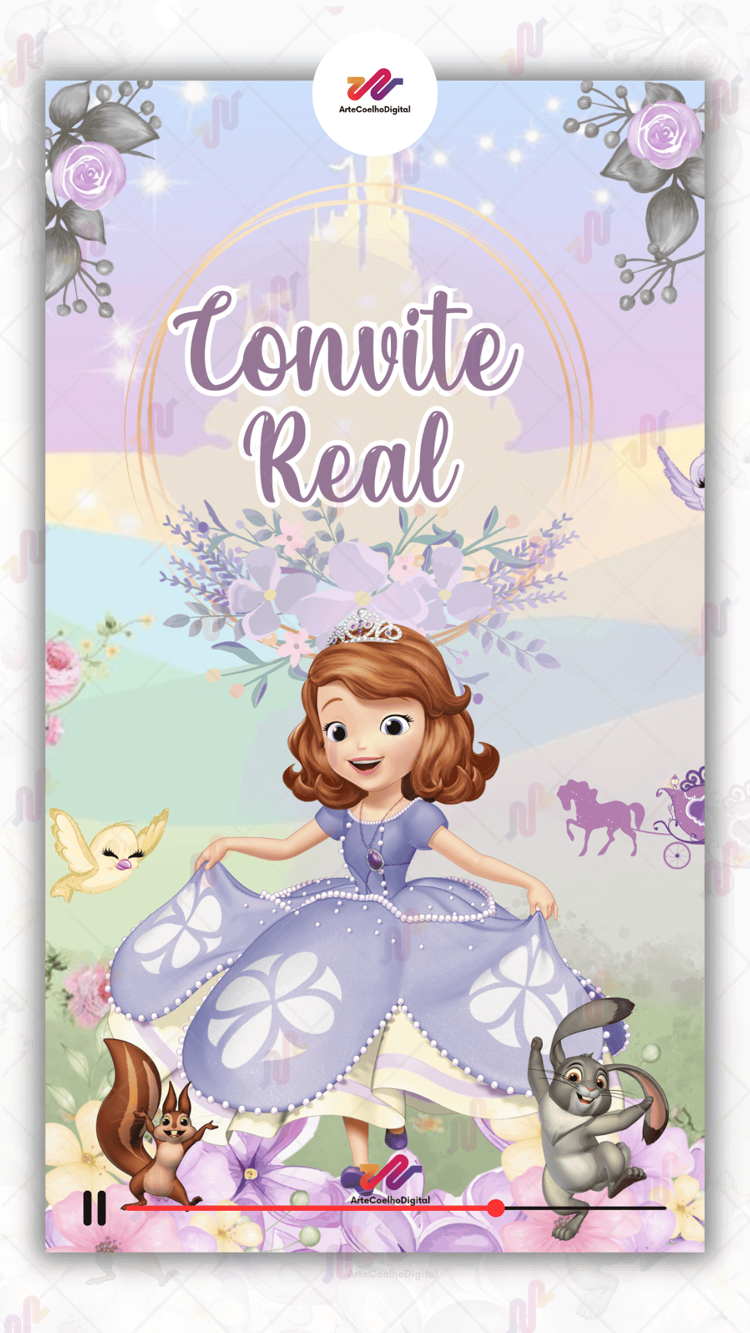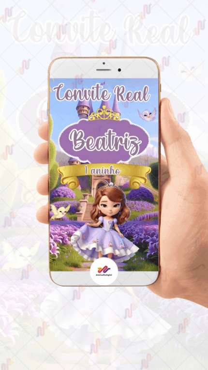 Convite Animado Princesa Sofia O preço original era: R$ 80,00.O preço atual é: R$ 75,00.