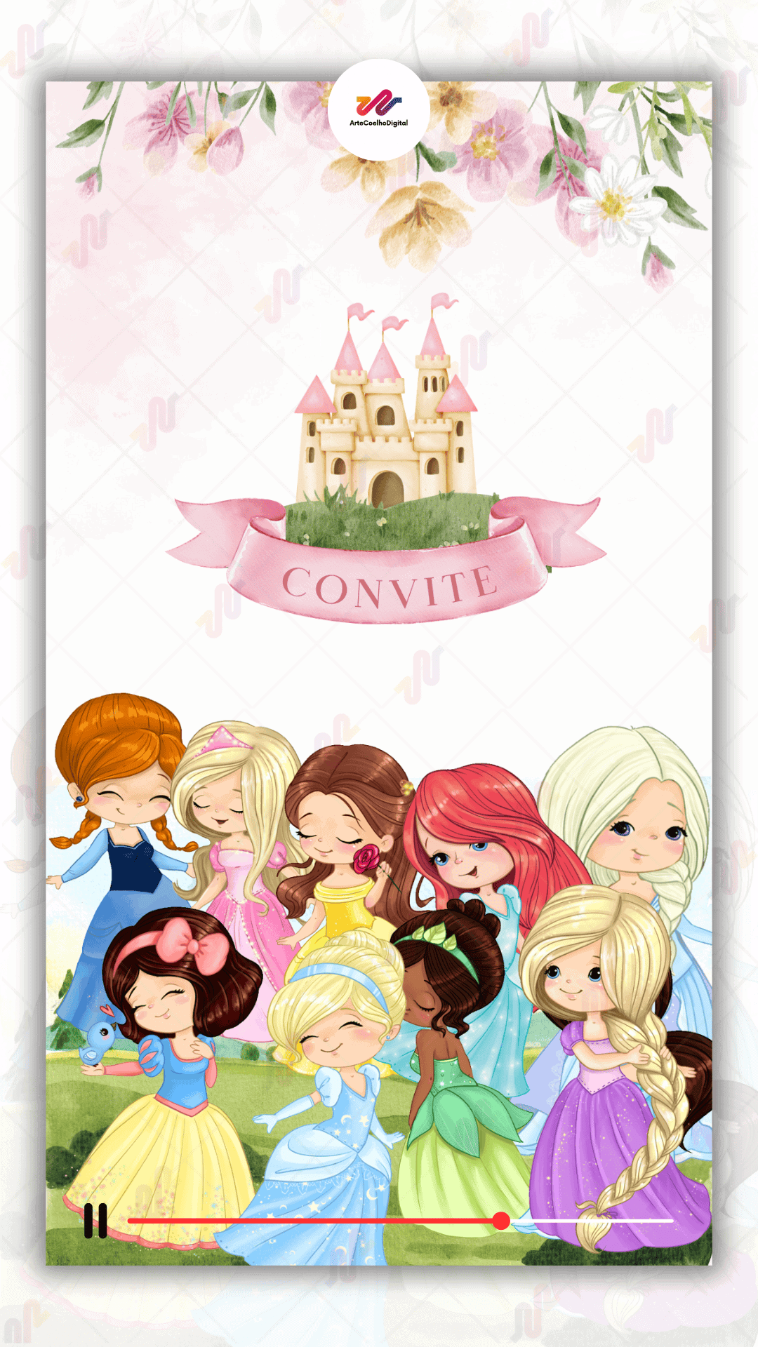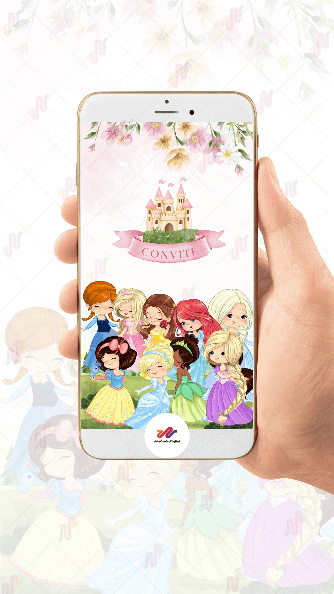 Convite Animado Plus Princesas Disney O preço original era: R$ 80,00.O preço atual é: R$ 75,00.