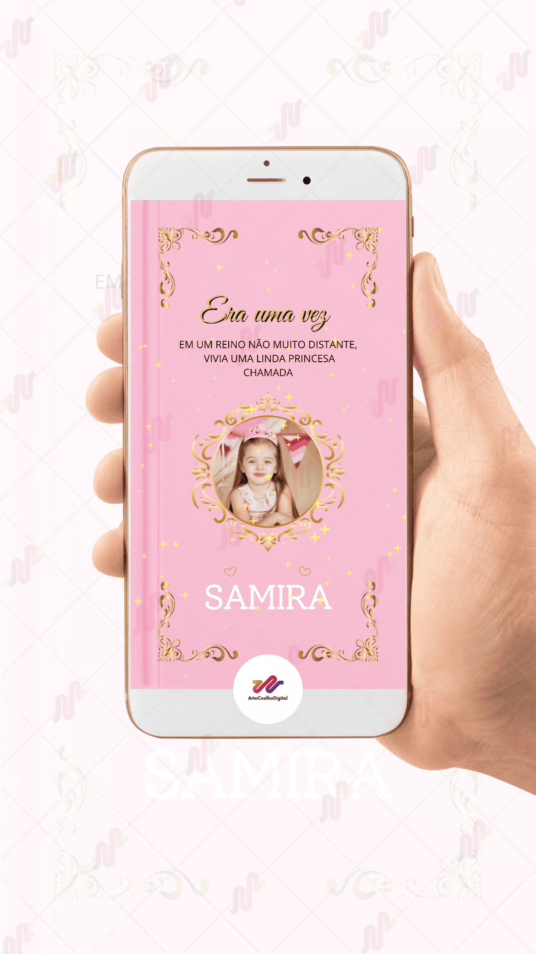 Seu convite será personalizado conforme o modelo do site, com base nas informações do formulário de compra.