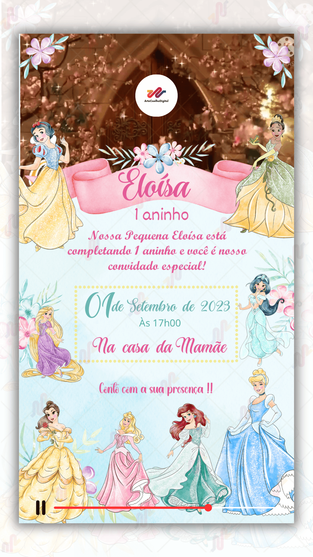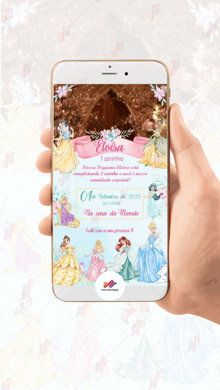 Convite Animado Princesas Disney O preço original era: R$ 80,00.O preço atual é: R$ 75,00.