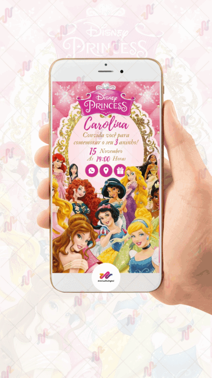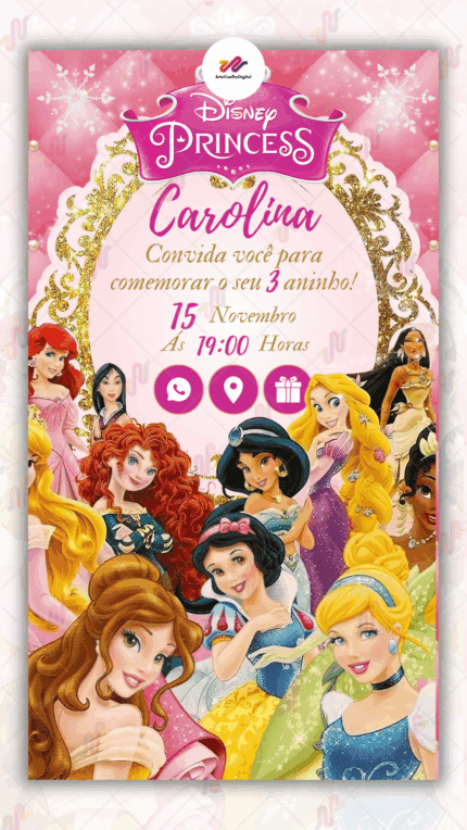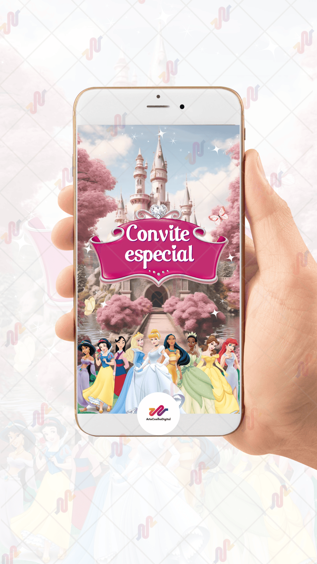 Convite Animado Princesas Disney O preço original era: R$ 80,00.O preço atual é: R$ 75,00.