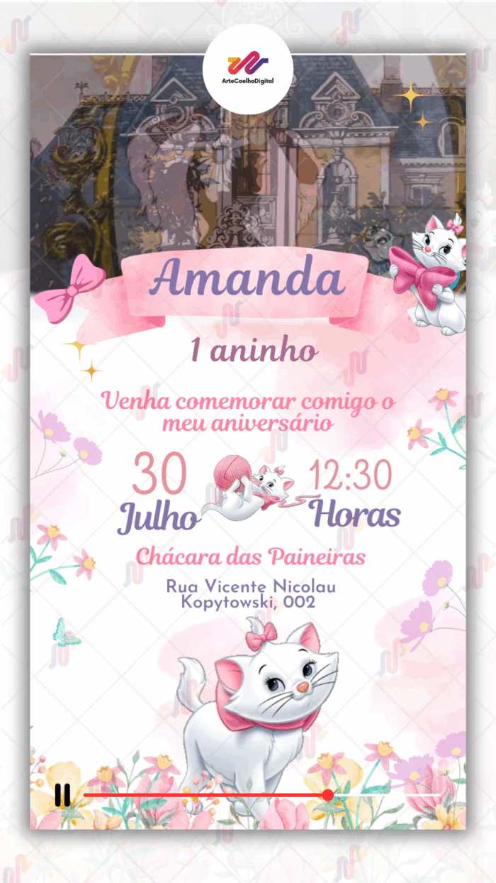 Seu convite será personalizado conforme o modelo do site, com base nas informações do formulário de compra.