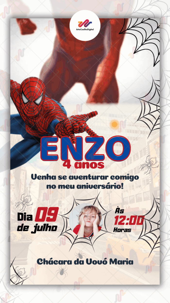 Seu convite será personalizado conforme o modelo do site, com base nas informações do formulário de compra.