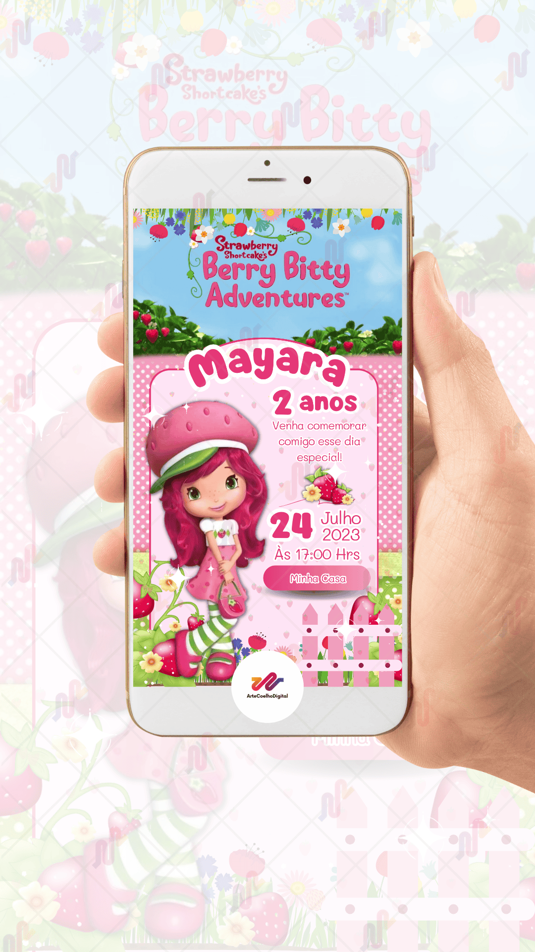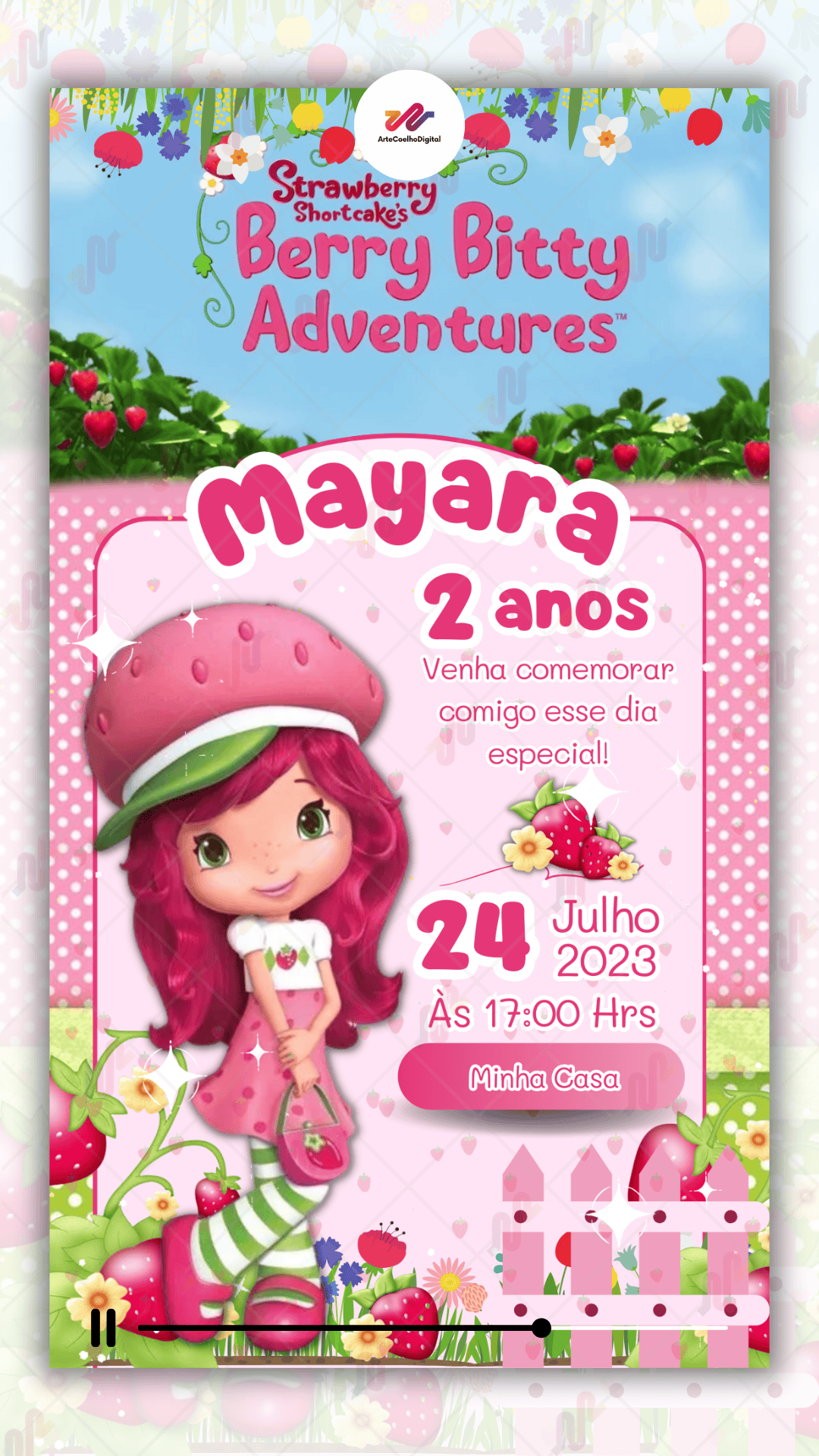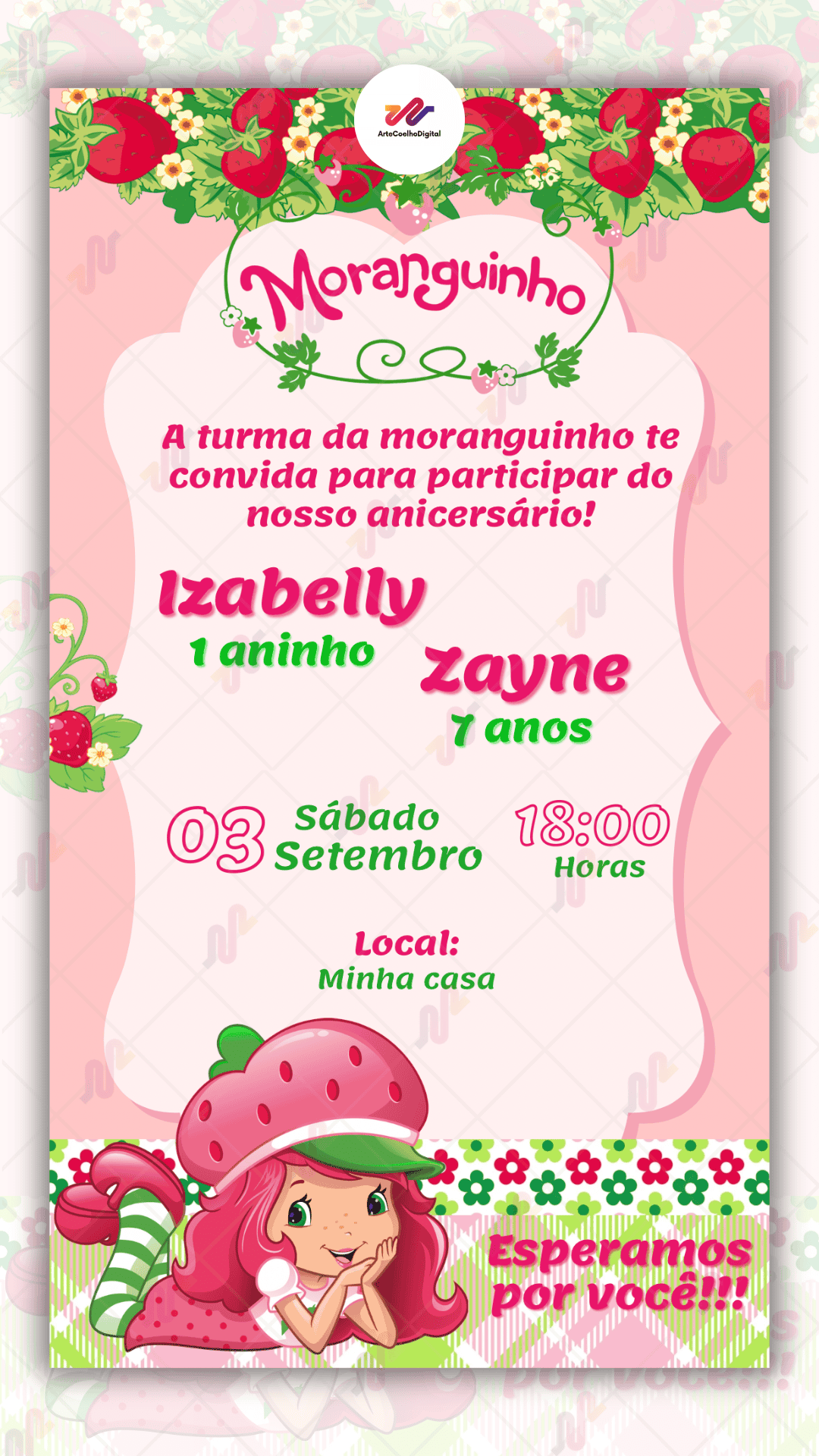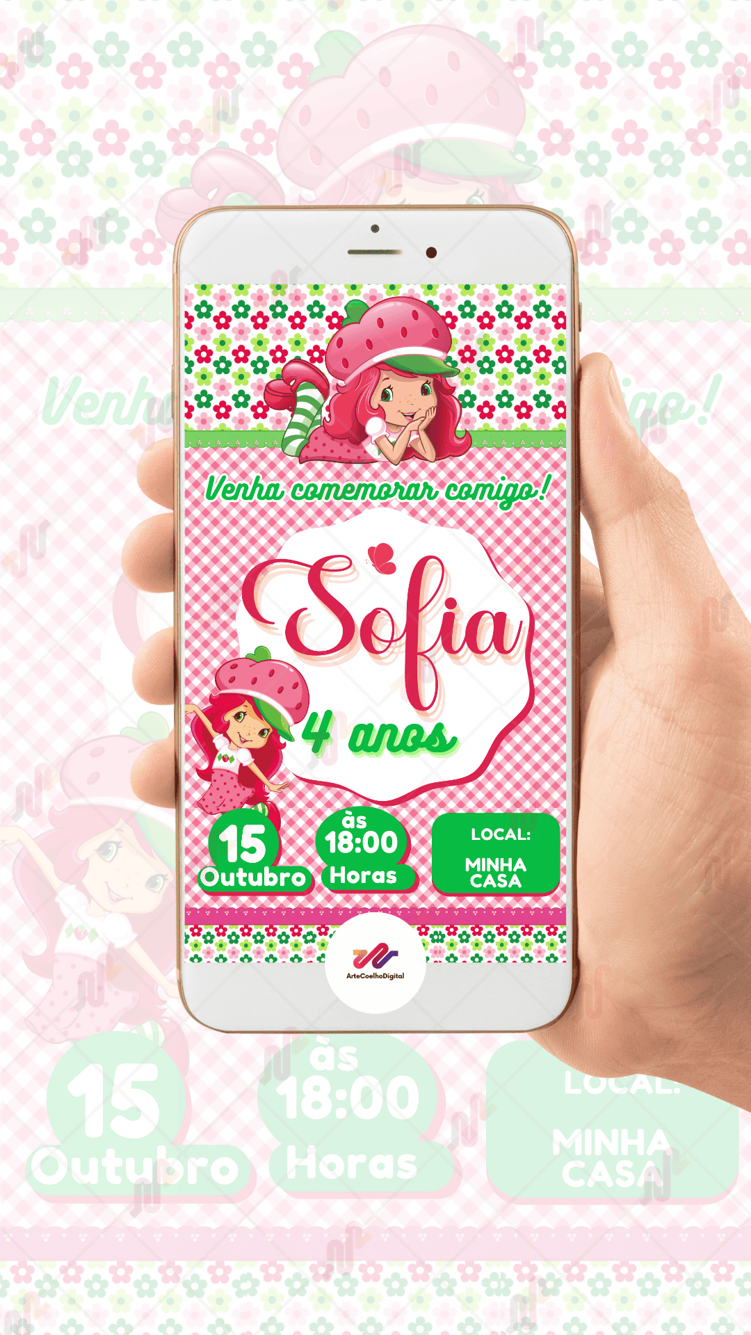 Convite animado Moranguinho O preço original era: R$ 80,00.O preço atual é: R$ 75,00.