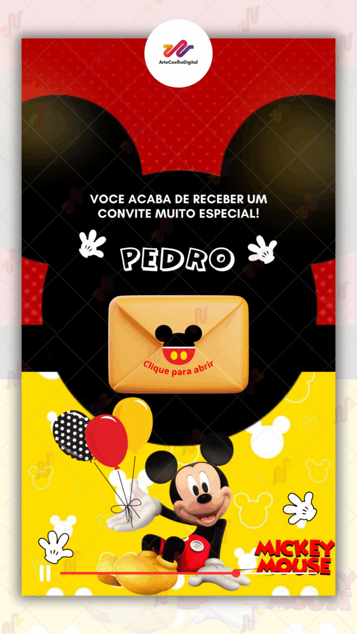 Seu convite será personalizado conforme o modelo do site, com base nas informações do formulário de compra, caso queira uma arte personalizada entrar em contato pelo nosso WhatsApp (11) 99217-1217