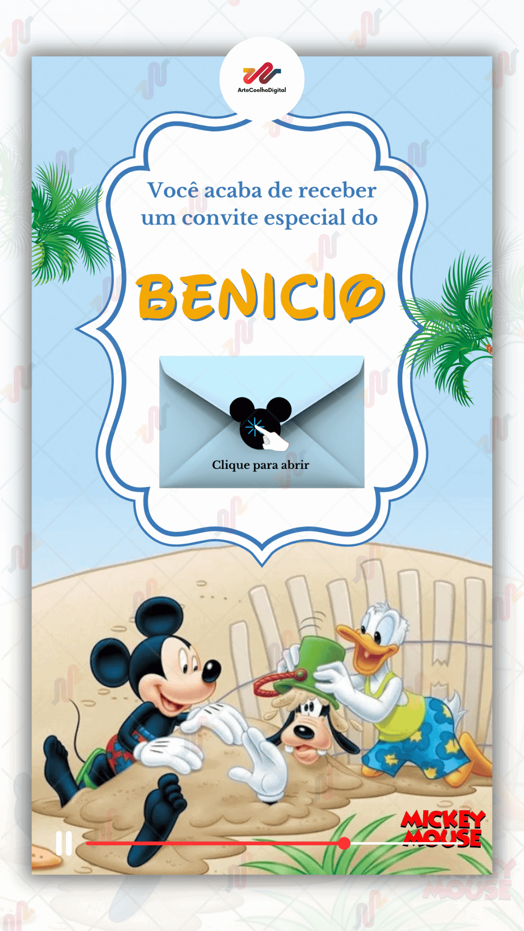 Convite Animado Plus Mickey
