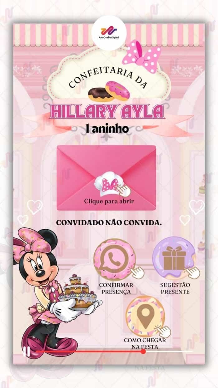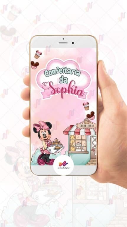 Convite Interativo Gold Plus Minnie Confeiteira