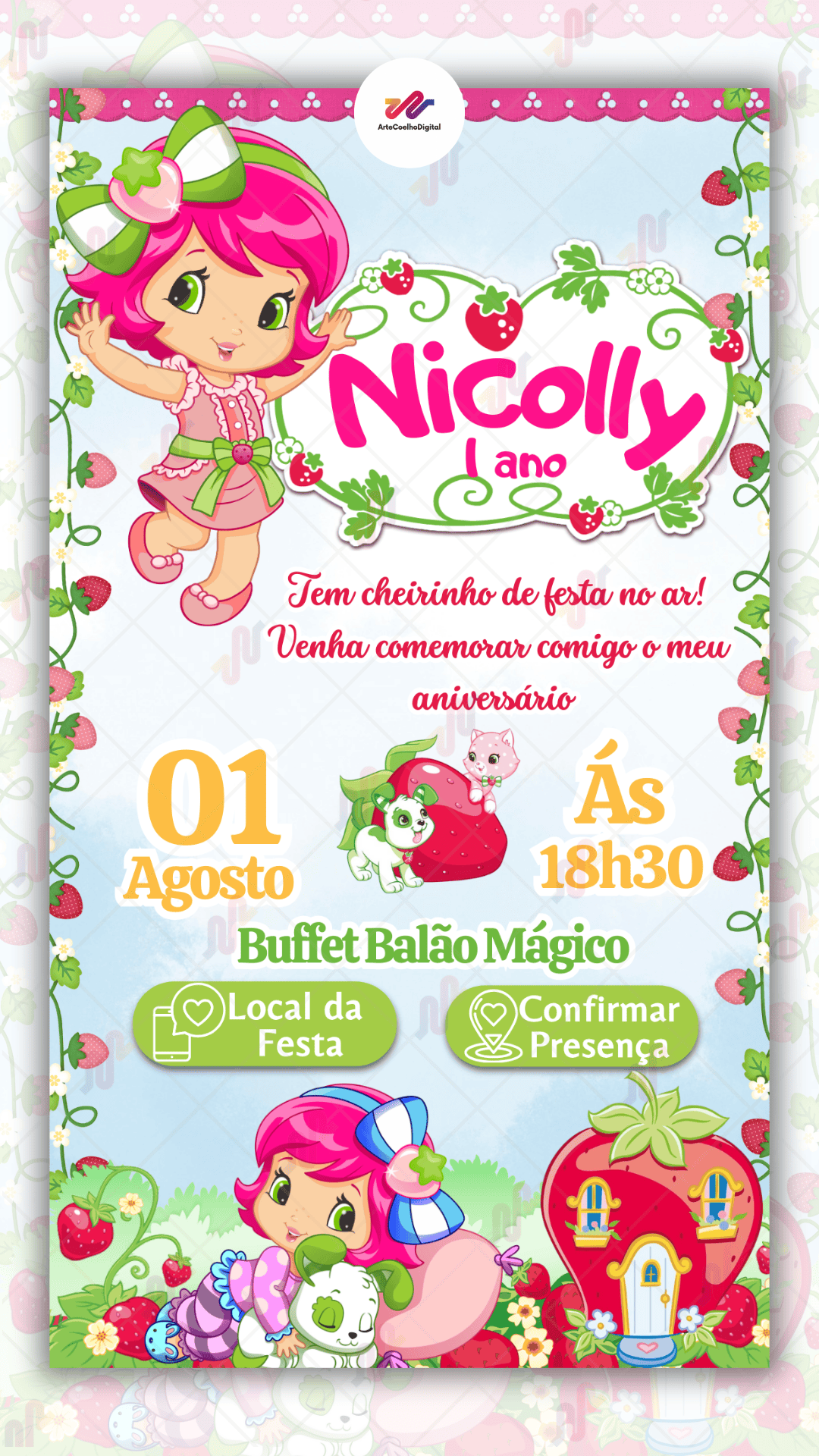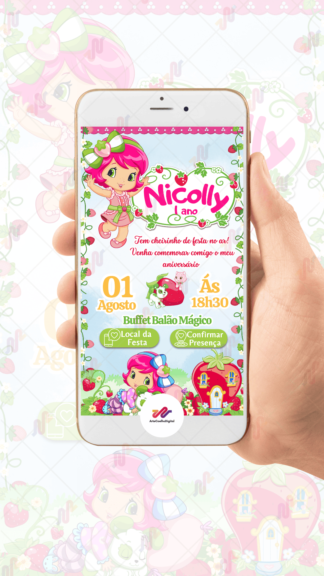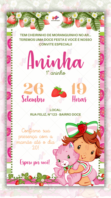 Convite Interativo Moranguinho O preço original era: R$ 80,00.O preço atual é: R$ 60,00.
