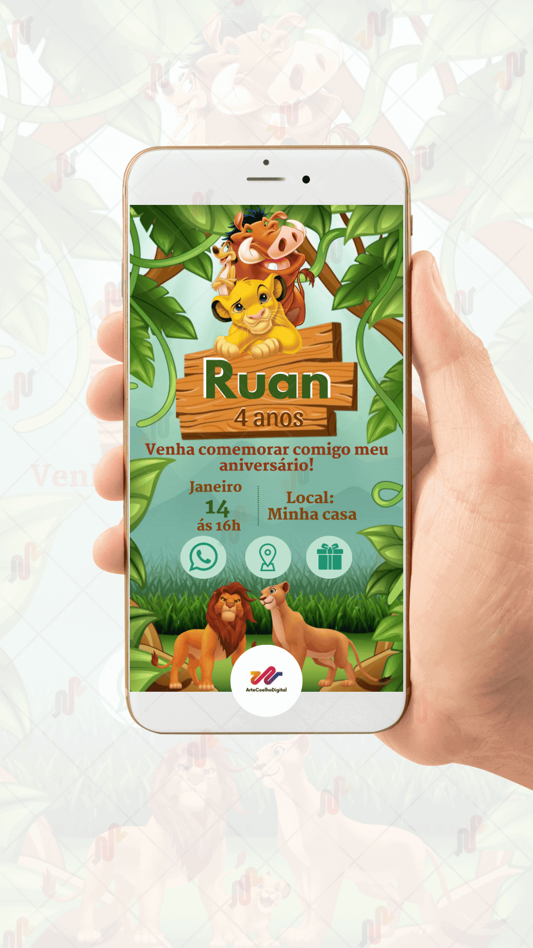 Convite Interativo Rei Leão O preço original era: R$ 80,00.O preço atual é: R$ 60,00.