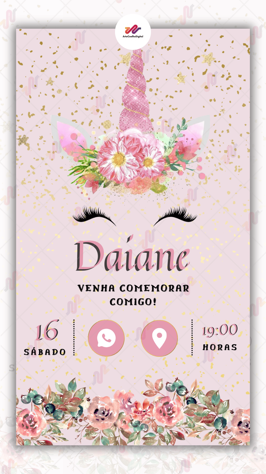 Seu convite será personalizado conforme o modelo do site, com base nas informações do formulário de compra.