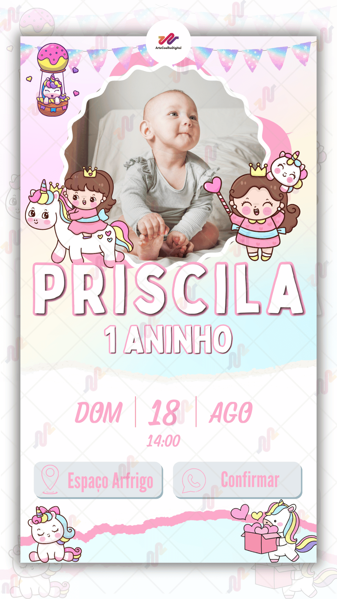 Seu convite será personalizado conforme o modelo do site, com base nas informações do formulário de compra.