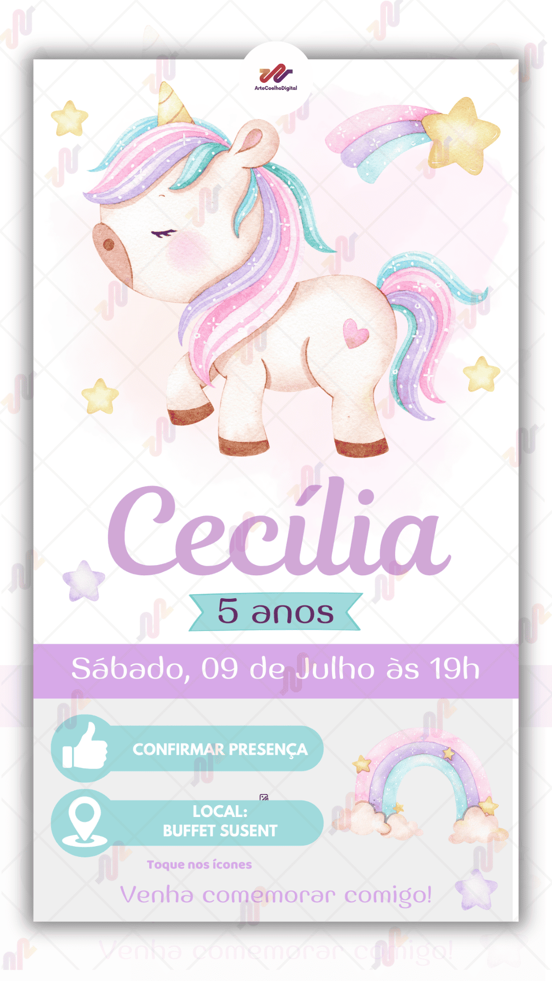 Seu convite será personalizado conforme o modelo do site, com base nas informações do formulário de compra.