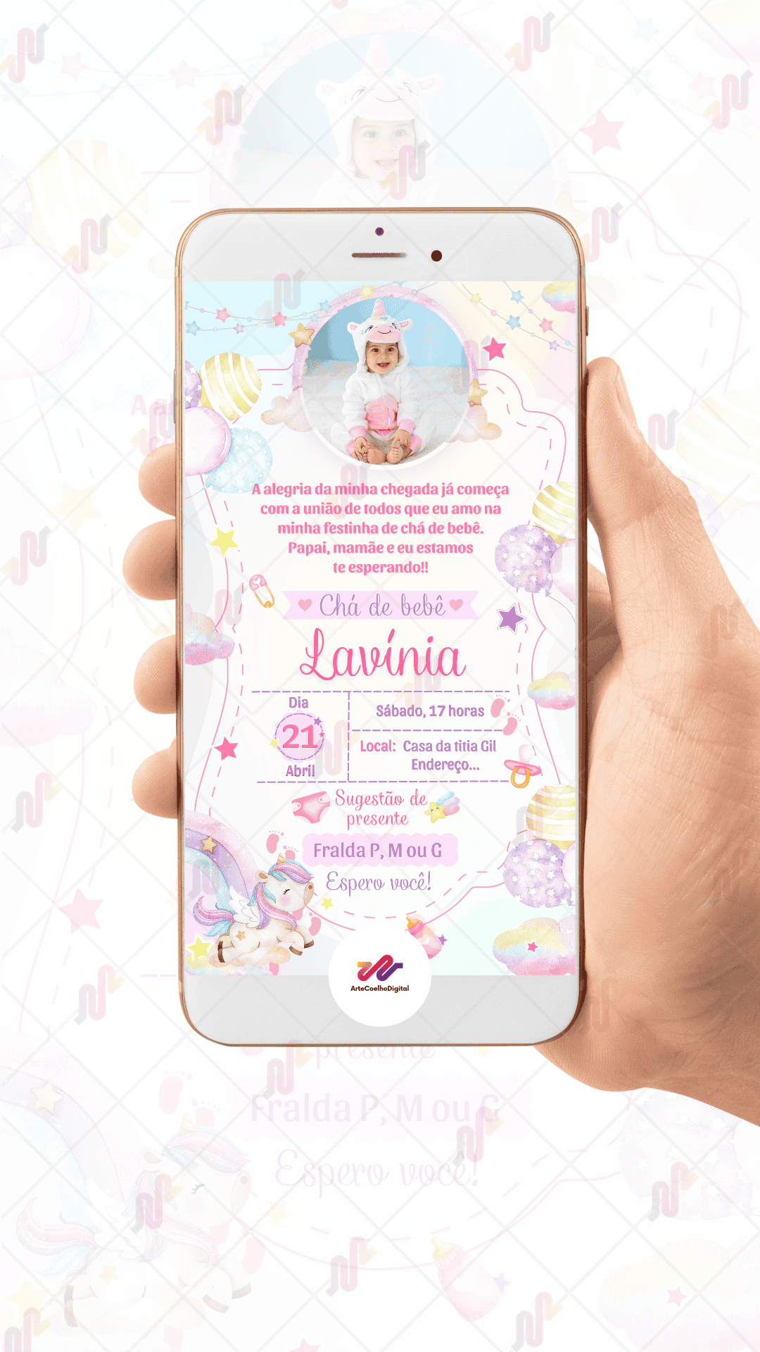 Convite Virtual Unicórnio O preço original era: R$ 60,00.O preço atual é: R$ 40,00.