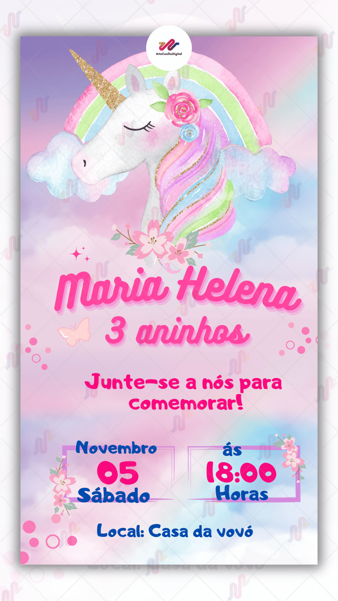 Prazo de Entrega: 3 dias úteisRemover termo: Convite digital unicórnio