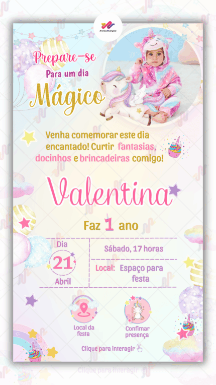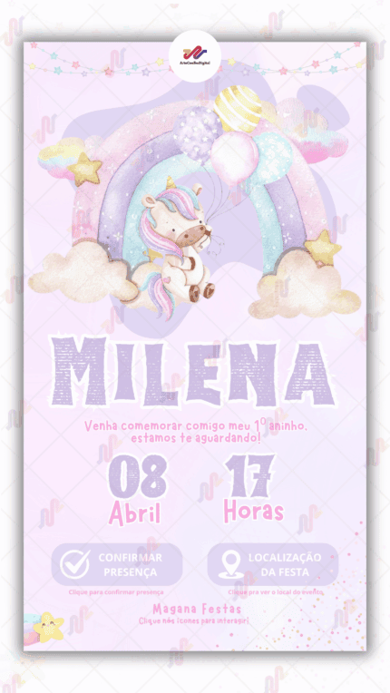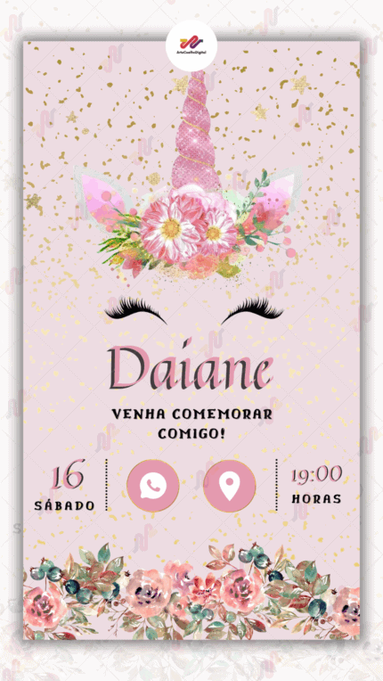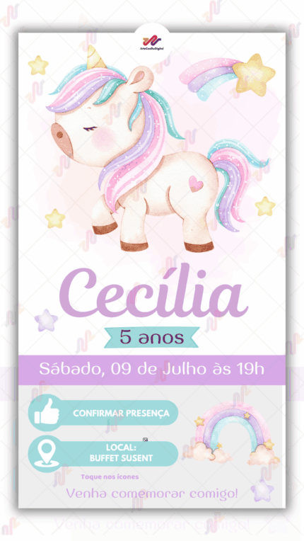Prazo de Entrega: 3 dias úteisRemover termo: Convite digital unicórnio